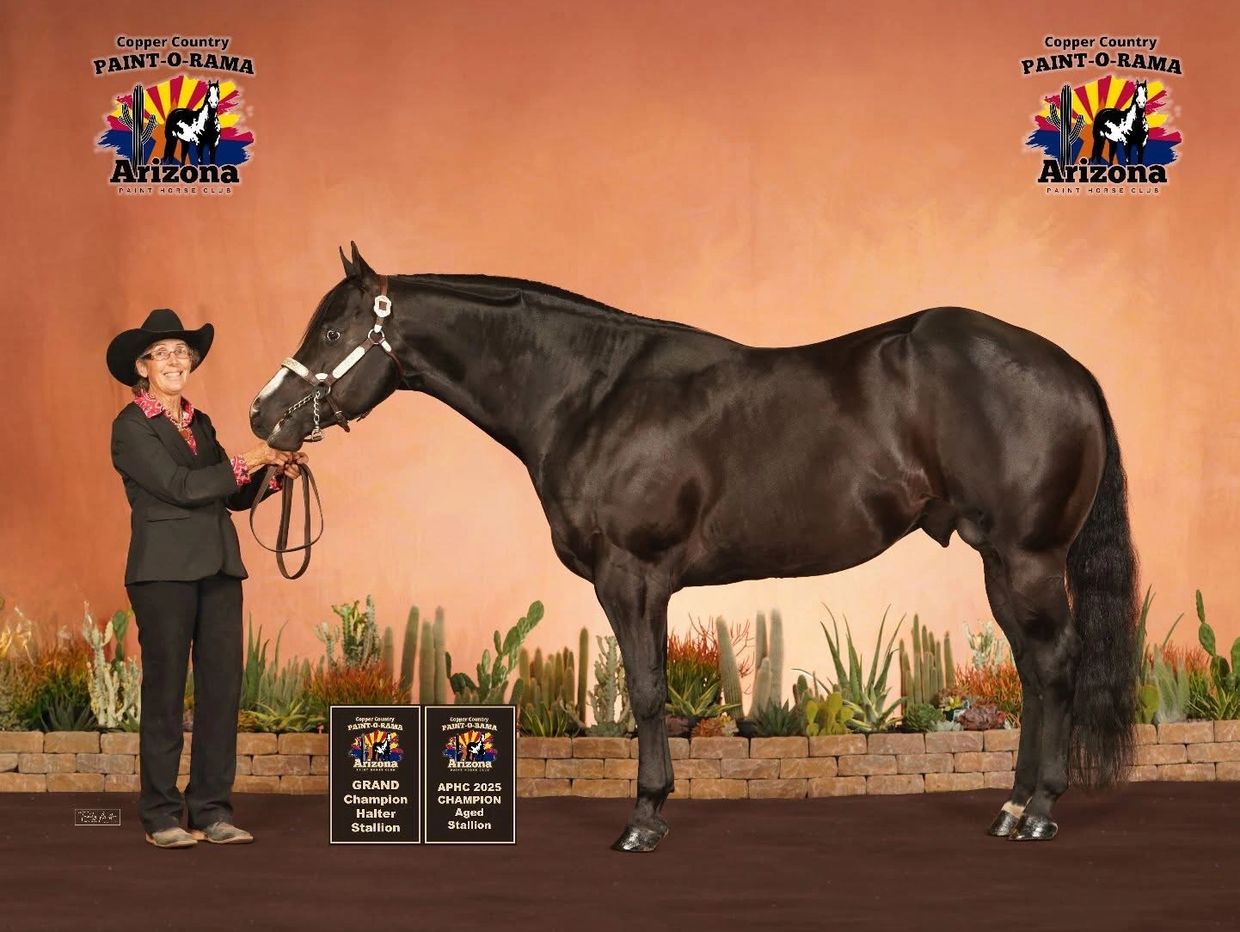 2021 APHA/AQHA Black Stallion 2023 APHA NATIONAL CHAMPION HALTER STALLION APHA SUPERIOR HALTER STALLION 6 Panel Negative - Gbed/n a/a E/e W20/n Cool Addiction x One Hot Lokin Lady